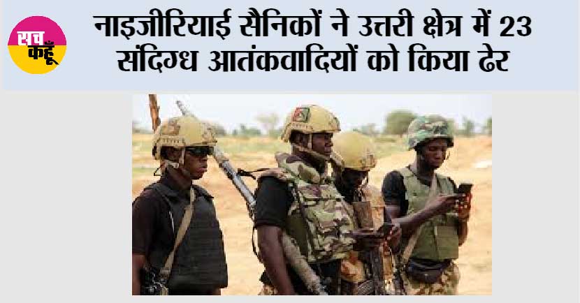 अबुजा (एजेंसी)। नाइजीरिया के उत्तरी राज्य कात्सिना में सैनिकों के साथ हुई मुठभेड़ में कम से कम 23 संदिग्ध आतंकवादी मारे गए। स्थानीय मीडिया ने सोमवार को सेना मुख्यालय के एक सूत्र के हवाले से यह जानकारी दी। नाइजीरिया की सरकारी समाचार एजेंसी के अनुसार सैनिकों ने शनिवार को कात्सिना के कंकारा स्थानीय सरकारी क्षेत्र के पाउवा गाँव में संदिग्ध आतंकवादियों के साथ मुठभेड़ के दौरान महिलाओं और बच्चों सहित 26 अपहृत पीड़ितों को भी बचाया। सूत्र ने बताया कि अभियान के दौरान बरामद मोटरसाइकिलें, आॅटो स्पेयर पार्ट्स, लुब्रिकेंट, कृषि मशीनरी और खाद्य सामग्री नष्ट कर दी गईं। साथ ही, सेना ने शांति बहाल होने तक देश भर में आतंकवादियों और अपराधियों को मिटाने संकल्प लिया है।