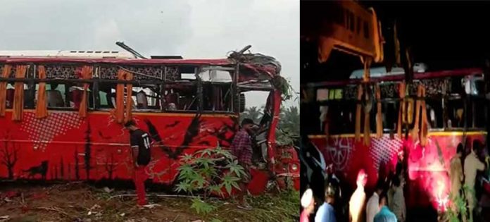 पलक्कड़ (एजेंसी)। केरल में वडक्कनचेरी के निकट मंगलम में गुरूवार तड़के एक पर्यटक बस और सरकारी केएसआरटीसी बस टक्कर में नौ लोगों की मौत हो गयी और 40 अन्य घायल हो गये है। सूत्रों ने आज यहां बताया कि पलक्कड़ जिले के मंगलम में रात 12.05 बजे कोट्टाराक्कारा से कोयंबटूर जा रही बस कोएक पर्यटक बस ने पीछे से टक्कर मार दी। टक्कर लगने के बाद बस दलदल में गिर गई। इस दुर्घटना में नौ लोगों की मौत हो गई और 40 लोग घायल हो गए।