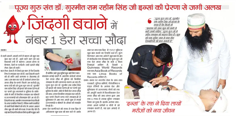 - रक्तदान में डेरा सच्चा सौदा के रिकॉर्ड