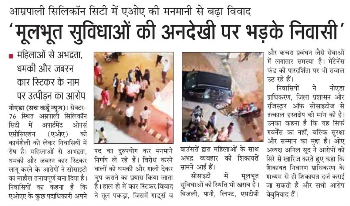 नोएडा आम्रपाली सिलिकॉन सिटी सोसायटी के रेजिडेंट का डिजिटल मंच पर फूटा गुस्सा, जानिए, क्या बोले