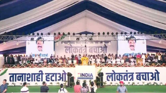 नई दिल्ली (सच कहूँ न्यूज)। Delhi News: विपक्षी दलों के प्रमुख नेता रविवार को दिल्ली के ऐतिहासिक रामलीला मैदान में इंडिया समूह के नेतृत्व में जुटे और अपनी ताकत का प्रदर्शन किया। इंडिया समूह ने भारतीय जनता पार्टी (भाजपा) की कथित जन विरोधी नीतियों और तानाशाही के विरोध में लोकतंत्र बचाओ रैली का आयोजन किया जिसमें कांग्रेस अध्यक्ष मल्लिकार्जुन खड़गे, पार्टी की पूर्व अध्यक्ष सोनिया गांधी, कांग्रेस नेता राहुल गांधी, प्रियंका गांधी वाड्रा, समाजवादी पार्टी के अखिलेश यादव, राष्ट्रीय जनता दल के तेजस्वी यादव, राष्ट्रवादी कांग्रेस पार्टी (शरद गुट) के शरद