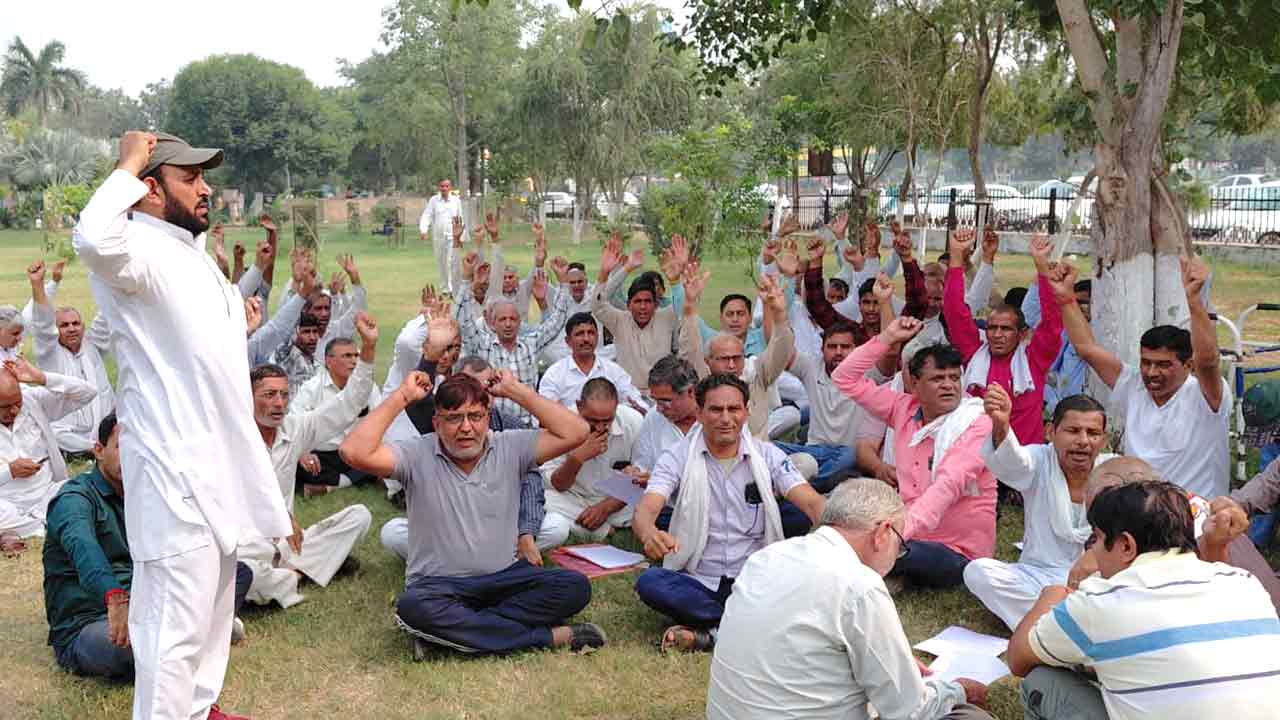 पैक्स के जीएम द्वारा साथी कर्मचारी को निलंबित किए जाने के बाद जीएम कार्यालय के साथ पार्क में धरना हुआ शुरू
