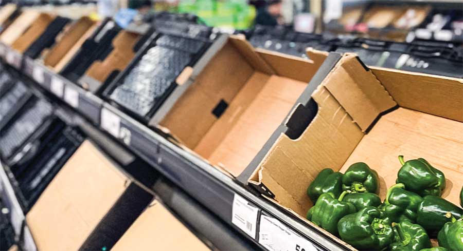 ब्रिटेन में सुपर मार्केट में राशनिंग करनी पड़ रही है यानी पैसे देने के बावजूद कोई भी व्यक्ति दो से ज्यादा आलू, टमाटर, खीरा या अन्य सब्जी नहीं खरीद सकता। यह ब्रिटेन के किसी एक सुपर मार्केट की बात नहीं है, बल्कि चार सबसे बड़े सुपर मार्केट मॉरिसन, अस्दा, एल्डि और टेस्को ने ताजा फल और सब्जियां लेने की सीमा तय कर दी है। पूर्वी लंदन, लिवरपूल और ब्रिटेन के कई हिस्सों में दुकानों से पहले ही फल और सब्जियां गायब हैं।