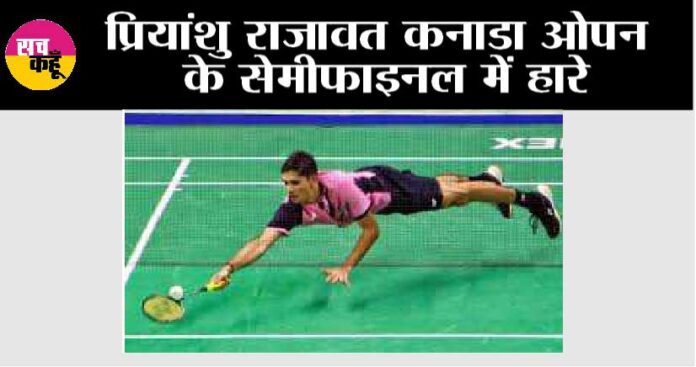 कैलगरी (एजेंसी)। भारत के बैडमिंटन खिलाड़ी प्रियांशु राजावत को कनाडा ओपन में पुरुष एकल के सेमीफाइनल मुकाबले में रविवार को फ्रांस के एलेक्स लैनियर से हार का सामना करना पड़ा। बैडमिंटन रैंकिंग में 39वें स्थान पर मौजूद प्रियांशु 45 मिनट तक चले मुकाबले में दुनिया के 37वें नंबर के खिलाड़ी फ्रांस के एलेक्स लैनियर से सीधे गेम में 21-17, 21-10 से हार गए। इस हार के साथ टूनार्मेंट में भारत का अभियान समाप्त हो गया।