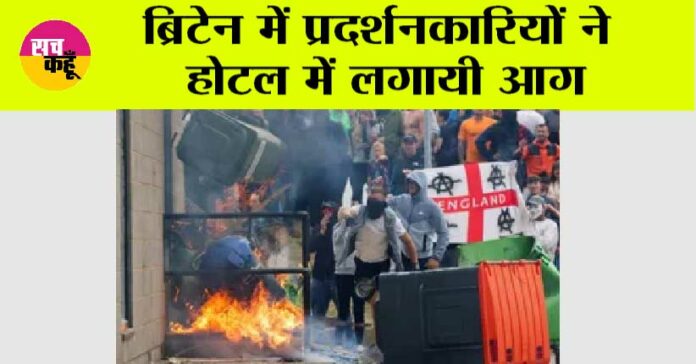 ब्रिटेन में प्रदर्शनकारियों ने होटल में लगायी आग