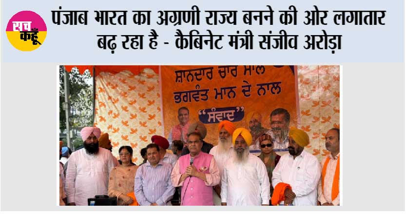 चंडीगढ़। कैबिनेट मंत्री संजीव अरोड़ा ने आज सराभा नगर में एक नुक्कड़ बैठक के दौरान मुख्यमंत्री भगवंत सिंह मान के नेतृत्व वाली पंजाब सरकार का चार साल का रिपोर्ट कार्ड प्रस्तुत किया। जन सभा को संबोधित करते हुए संजीव अरोड़ा ने कहा कि पंजाब तेजी से विकास की ओर बढ़ रहा है और जल्द ही “रंगला पंजाब” बन जाएगा। उन्होंने कहा कि राज्य ने पिछले चार वर्षों में ऐतिहासिक और अभूतपूर्व प्रगति हासिल की है, जिसकी पहले कभी कल्पना भी नहीं की गई थी और न ही पिछले 70 वर्षों में ऐसा हुआ।