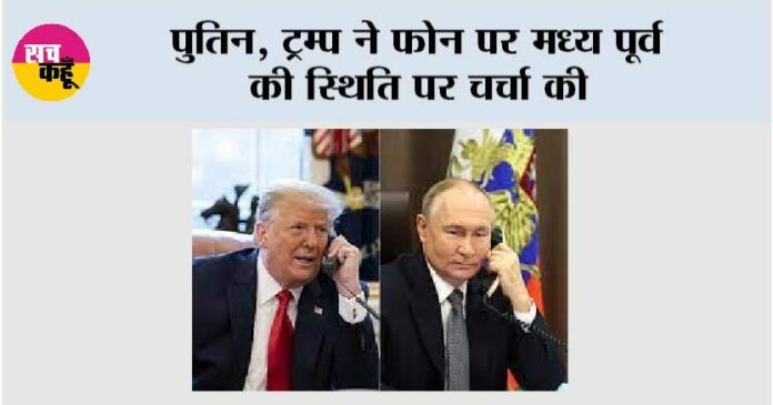 मास्को (एजेंसी)। रूस के राष्ट्रपति व्लादिमीर पुतिन और अमेरिका के राष्ट्रपति डोनाल्ड ट्रम्प ने फोन पर मध्य पूर्व की स्थिति पर चर्चा की है। क्रेमलिन ने यह जानकारी दी है। पुतिन के सहयोगी यूरी उशाकोव ने कहा, ‘बातचीत 50 मिनट तक चली, यह सार्थक, ईमानदार और बहुत उपयोगी थी।’ उन्होंने कहा ‘स्वाभाविक रूप से यह मध्य पूर्व में स्थिति के खतरनाक रूप से बिगड़ने पर केंद्रित थी।’