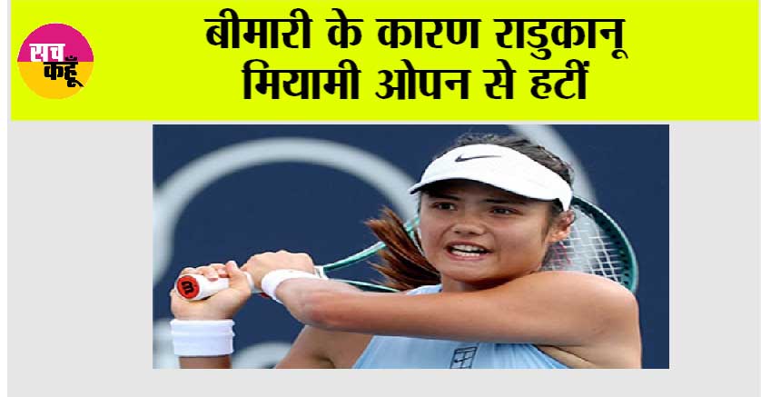 फ्लोरिडा (अमेरिका) (एजेंसी)। बीमारी के कारण ब्रिटेन की स्टार टेनिस खिलाड़ी एम्मा राडुकानू ने इस सप्ताह शुरू होने वाले मियामी ओपन से अपना नाम वापस ले लिया है। ब्रिटेन की नंबर एक खिलाड़ी राडुकानू ने पिछले महीने मध्य-पूर्व में खेलते समय बीमार पड़ गई थीं और अभी भी वह वायरल के बाद होने वाले लक्षणों से जूझ रही हैं। फ्लोरिडा के मियामी गार्डन्स में 17 से 29 मार्च तक होने वाले इस टूनार्मेंट के पहले दौर में उन्हें ‘बाय’ (सीधे अगले दौर में प्रवेश) मिला था। 24 साल की इस खिलाड़ी को पहले राउंड में अमेरिकी खिलाड़ी पेटन स्टर्न्स के खिलाफ खेलना था, लेकिन उन्होंने टूनार्मेंट से हटने का निर्णय लिया। दूसरी ओर मियामी ओपन के पहले राउंड में ब्रिटेन की फ्रैन जोन्स का मुकाबला अमेरिका की महान खिलाड़ी वीनस विलियम्स से होगा। उल्लेखनीय है कि राडुकानू ने पिछले सप्ताह इंडियन वेल्स में हुए टूनार्मेंट में खेलने का फैसला किया था। वह तीसरे दौर तक पहुंचीं, लेकिन वहां उन्हें दुनिया की छठी रैंक वाली खिलाड़ी अमांडा अनिसिमोवा के हाथों महज 52 मिनट में हार का सामना करना पड़ा था।