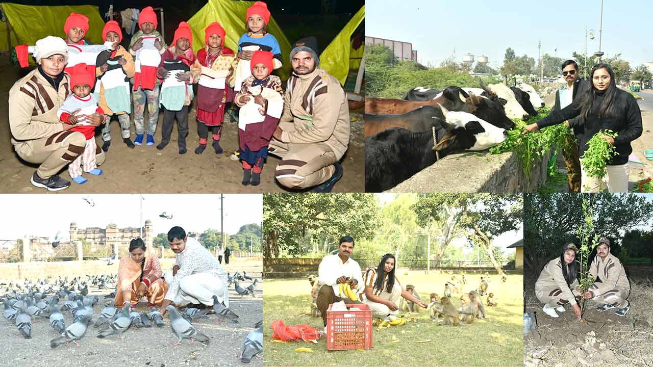 एम एस जी डेरा सच्चा सौदा व मानवता भलाई केन्द्र कोटा की आई टी विंग की सेवादार रेनु इन्सां एवं सत्य प्रकाश दोनों ने ब्लड बैंक जाकर खून दान किया, दोनों ने फलदार पौधे लगाये, झोपड़ियों में जाकर जरूरत मंद 15 बच्चों को जर्सी, मौजे व गर्म टोपियां तथा 40 बच्चों को गर्म लेगी वितरित की। साथ ही 80 बच्चों को स्टेशनरी जिसमें पेन, पेंसिल, रबर, पेन बॉक्स व रजिस्टर सहित 9 बच्चों को स्कूल बैग वितरित किये गए। गायों को हरा चारा खिलाया, पक्षियों को दाना, मछलियों को आटा, बंदरों को केले व डॉग को बिस्किट खिलाये। मानवता भलाई का यह सिलसिला चलता ही गया और दुल्हे सत्य प्रकाश के 5 दोस्तों ने भी अपने दोस्त की शादी की खुशी में खून दान किया, रेनु की सहेली ज्योति इन्सां ने भी खून दान किया। दुल्हन रेनु इन्सां की दोस्तों ने 16 फलदार पौधे लगाये। Kota News