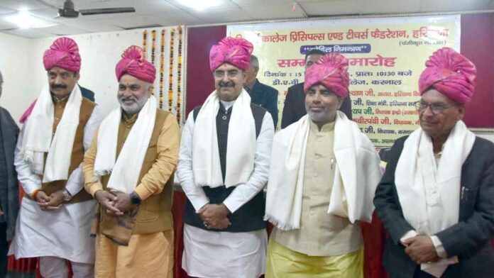 विधानसभा अध्यक्ष आज यहां रिटायर्ड कालेज प्रिंसिपल्स एंड टीचर्स फेडरेशन हरियाणा की ओर से डीएवी पीजी कालेज में आयोजित सम्मान समारोह में बतौर मुख्य अतिथि बोल रहे थे। समारोह में हरियाणा के शिक्षा मंत्री महिपाल ढांडा ने अति विशिष्ट और इंद्री के विधायक रामकुमार कश्यप, असंध के योगेंद्र राणा, करनाल के जगमोहन आनंद ने विशिष्ट अतिथि के रूप में भाग लिया। पांचों का पगड़ी पहनाकर, शाल भेंट कर व स्मृति चिह्न देकर स्वागत किया गया।