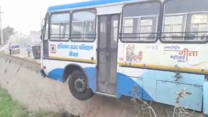 बस में सवार यात्रियों सुरेश, राहुल संजय ने बताया कि बस शाम को करीब साढ़े चार बजे चीका से कैथल की ओर आ रही थी। वे बस में सवार थे। कैथल के नजदीक पट्टी अफगान के पास में रोड पर दो नंदी आपस में लड़ रहे थे। उनसे बचने के लिए अचानक एक बुजुर्ग बस के सामने आ गया। ड्राइवर ने तुरंत ब्रेक लगा दिए। इससे बस तालाब की दीवार पर चढ़ गई। बस में सवार यात्रियों ने बताया कि ड्राइवर की समझदारी से बस पट्टी अफगान के तालाब की दीवार क्रॉस करते हुए रुक गई जिससे बस तो हवा में झूल गई परंतु सवारियां सभी सुरक्षित रही। हादसे में बुजुर्ग को कुछ चोट आई हैं। देखने में यह हादसा बड़ा भयंकर लग रहा था, क्योंकि बस हवा में झूल रही है और नीचे गहरा तालाब है।