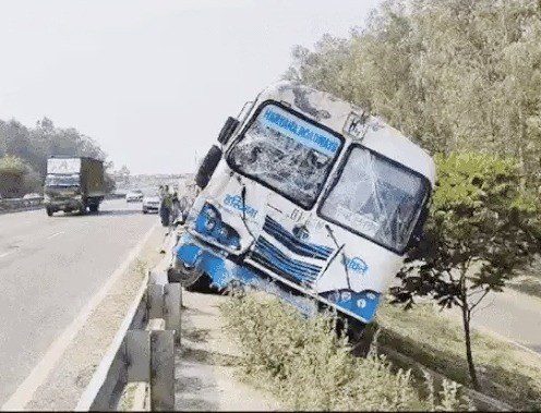 कुरुक्षेत्र (सच कहूँ/देवीलाल बारना)। Haryana Roadways Bus Accident: राष्ट्रीय राजमार्ग-44 पर गांव झिरबड़ी पुल के नजदीक हरियाणा रोडवेज की बस और ट्रक की टक्कर हो गई। चोटिल बस ड्राइवर मुकेश कुमार की एलएनजेपी अस्पताल में इलाज के दौरान मौत गई। हादसे में बस में सवार दर्जन से ज्यादा यात्रियों को भी चोटें आई। उनका इलाज भी अस्पताल में चल रहा है। घटना बुधवार सुबह 5 बजे की बताई जा रही है। पुलिस के मुताबिक गुरुग्राम डिपो की बस गुरुग्राम से चंडीगढ़ जा रही थी। जैसे ही बस सुबह करीब 5 बजे झिरबड़ी गांव के पास पुल पर चढ़ने लगी तो आगे चल रहे ट्रक से टकरा गई। ट्रक लगते ही बस बेकाबू होकर पुल से नीचे गिरने लगी, मगर रेलिंग के नीचे गिरने से बच गई। Kurukshetra News