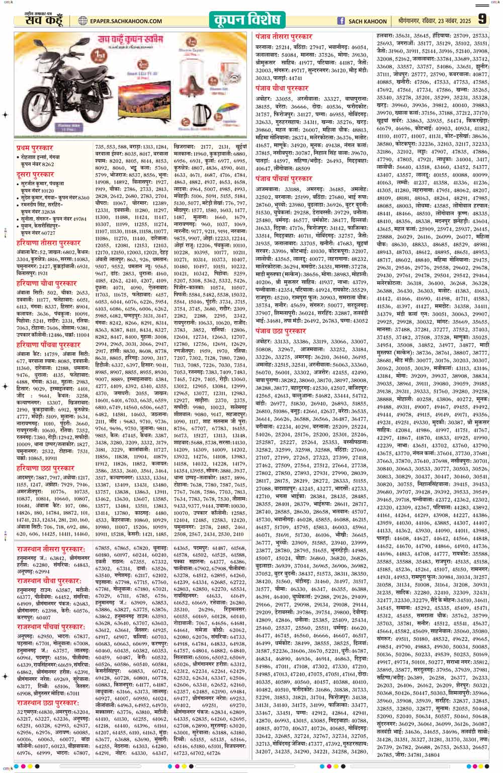 दूसरा ईनाम: सुरजीत कुमार निवासी पंचकूला, कूपन नं. 10120, सुदेश कुमार निवासी गंगवा (हिसार) कूपन नं. 8360, रमन दीप सिंह निवासी सरहिंद (फतेहगढ़ साहिब) कूपन नं. 32838, सुनीता निवासी संगरूर, कूपन नं. 49784, युवान निवासी केसरीसिंहपुर (श्रीगंगानगर), कूपन नं. 60727