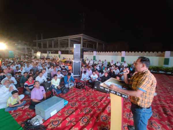 सच कहूँ/सुनील वर्मा, सरसा। पूज्य गुरु संत डॉ. गुरमीत राम रहीम सिंह जी इन्सां ने हमेशा ही इंसानियत का पाठ पढ़ाया है। जिस पर चलते हुए आज भी साध-संगत दिन-रात मानवता भलाई के कार्यों में लगी हुई है। आज भी हम पूज्य गुरु जी के अडोल आशिक है और हमारा दृड विश्चास सदा बना रहेगा। साध-संगत अब दोगुनी रफ्तार के साथ मानवता भलाई के कार्य करेगी। उक्त उद्गार हरियाणा 45 मैम्बर अमरजीत इन्सां ने शनिवार सांय शाह सतनाम जी मार्ग स्थित गौलछा पैलेस में आयोजित हुई सरसा ब्लॉक स्पेशल ब्लॉकस्तरीय नामचर्चा में पहुंची हुई साध-संगत को संबोधित करते हुए कही। उन्होंने कहा कि इतिहास गवाह है कि आदिकाल से ही संत-महापुरूषों को मुसीबतों का सामना करना पड़ा है। लेकिन एक दिन सच की जीत जरूर होगी और सच का सूरज जरूर चमकेगा। नामचर्चा के दौरान उपस्थित डेरा श्रद्धालुओं ने अपने हाथ खड़े कर संकल्प लिया कि वे पूज्य गुरु जी द्वारा दिखाये गए मार्ग पर पूरी अणख, गैरत और दृढ़ता से चलेगे।