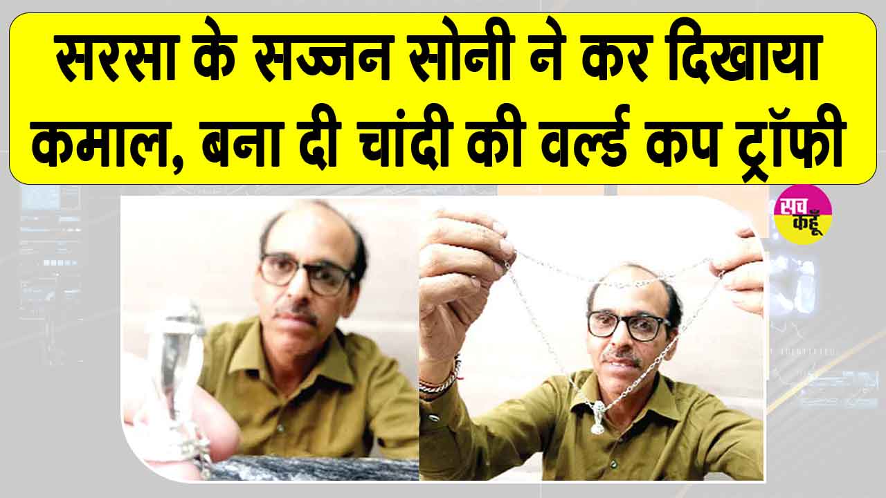Women’s Cricket World Cup Trophy: सरसा (सच कहूँ न्यूज)। शहर के स्वर्णकार सज्जन सोनी एक बार फिर अपनी अनोखी कला से सुर्खियों में हैं। उन्होंने पहली बार चांदी से सबसे छोटी आईसीसी महिला क्रिकेट विश्व कप ट्रॉफी तैयार की है। जो बेटियों के लिए प्रेरणादायक संदेश प्रस्तुत करता है। सज्जन सोनी ने बताया कि उन्होंने 3 ग्राम 600 मिलीग्राम चांदी से हाल में हुए आईसीसी महिला क्रिकेट वर्ल्ड कप की ट्रॉफी तैयार की है। Sirsa News