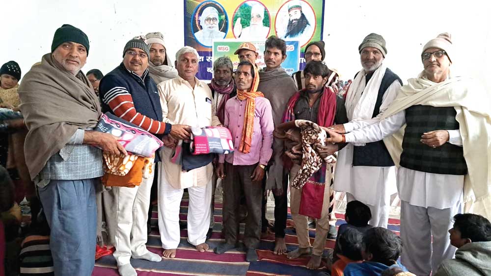 तोशाम (सच कहूँ न्यूज)। पूज्य गुरु संत डॉ. गुरमीत राम रहीम सिंह जी इन्सां की पावन शिक्षाओं पर चलते हुए ब्लॉक तोशाम की साध-संगत ने पूजनीय परम पिता शाह सतनाम सिंह जी महाराज के पावन अवतार माह की खुशी में गरीब जरूरतमंदों को गर्म वस्त्र भेंट किए। इस अवसर पर तोशाम के सरपंच राजेश तंवर व वार्ड 13 से पार्षद राजा ने मुख्यतिथि के तौर पर शिरकत की। इस दौरान 100 गरीब जरूरतमंदों को गर्म कपड़े व कंबल वितरित किए गए।