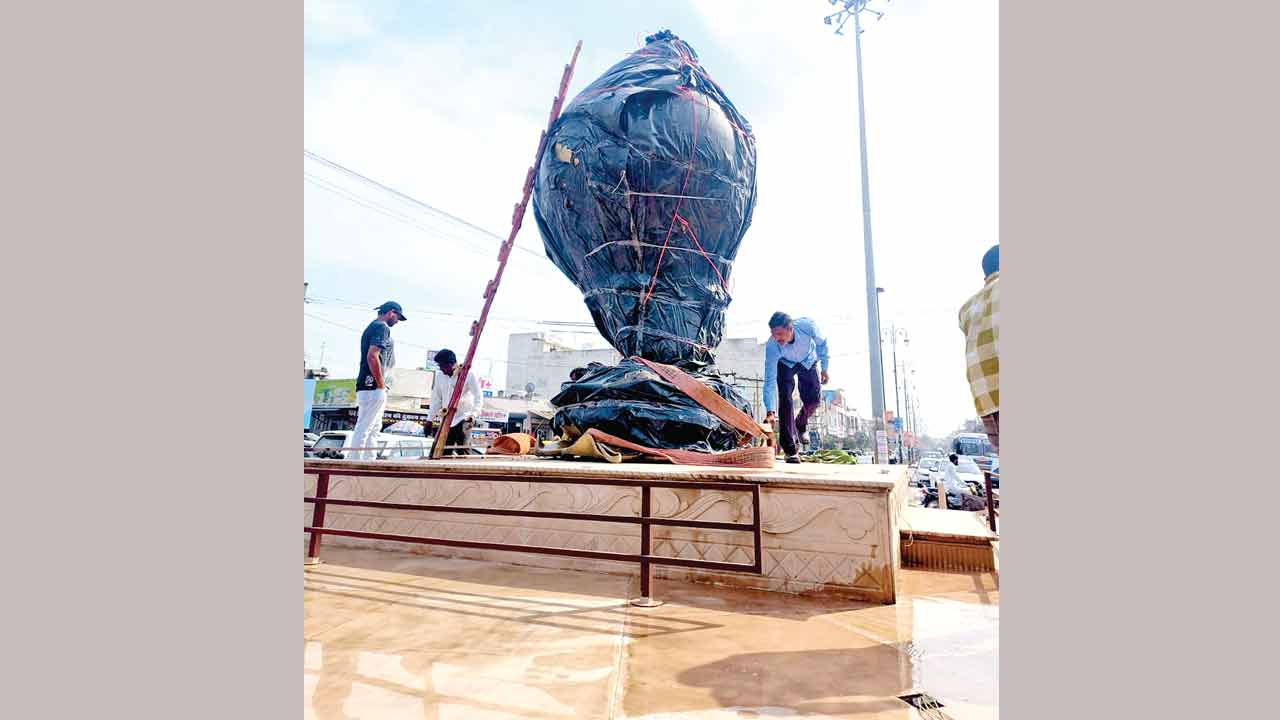 - प्रसिद्ध शिल्पकार राम सुतार के बेटे अनिल सुतार ने किया भव्य शंख का निर्माण