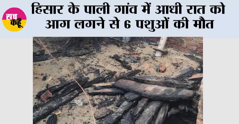 हिसार सच कहूँ/संदीप सिंहमार।। हिसार के पाली गांव में बीती रात करीब 12 बजे एक भयंकर आग लगने की घटना घटी, जिसमें 6 मवेशी जिंदा जल गए। आग लगने की सूचना मिलते ही ग्रामीण तुरंत मौके पर पहुंचे तथा फायर ब्रिगेड और नारनौंद थाना पुलिस को सूचित किया। जानकारी के अनुसार भूप सिंह के बरामदे में अचानक शॉर्ट सर्किट से आग लग गई। बरामदे में 4 भैंसें और 2 कटड़ी पशु बंधे थे, जो लकड़ी की कड़ियों से बनी छत के जलकर ढह जाने के कारण बाहर नहीं निकल पाए। साथ ही बरामदे में रखा ट्रैक्टर के लिए डीजल तेल भरा ड्रम आग को और भी भड़काने वाला साबित हुआ, जिससे आग ने तेजी से बरामदे को अपनी चपेट में ले लिया।