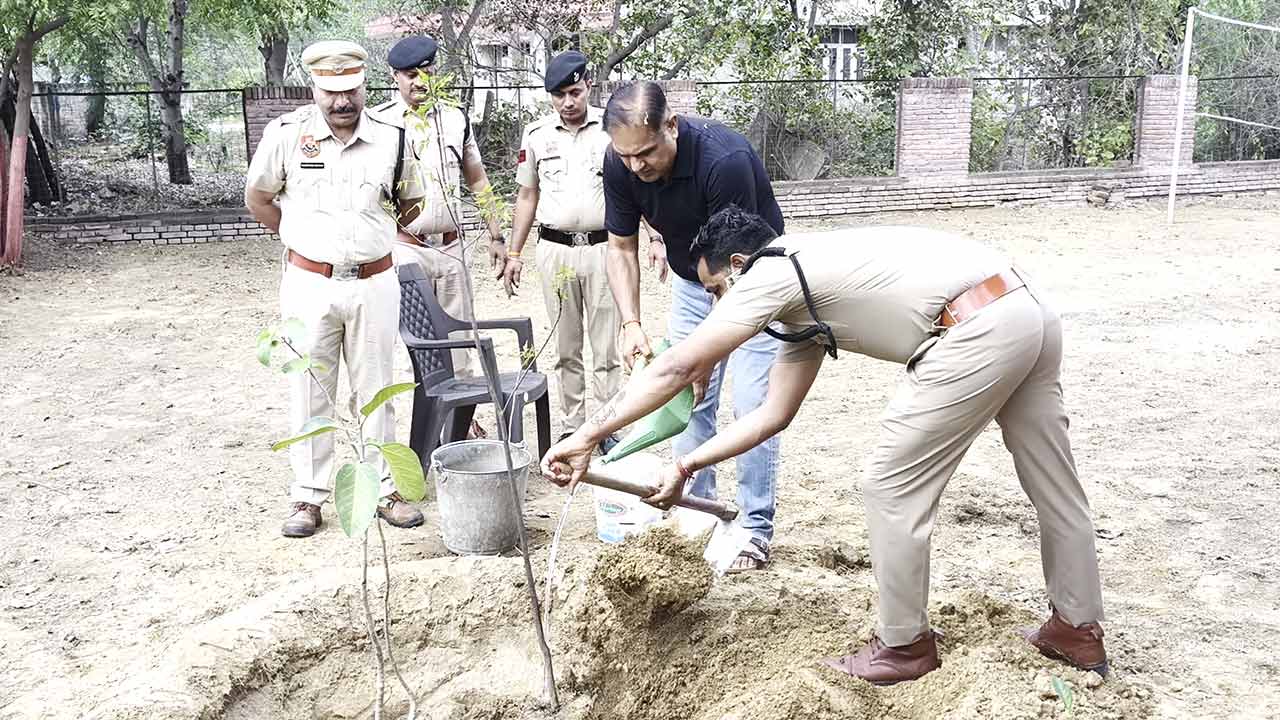 Bhiwani News चौकी के निरीक्षण के दौरान पौधारोपण करते पुलिस अधीक्षक। छाया नितिन।