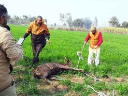 नाले में गिरे बारहसिंगे को ग्रामीणों ने निकाला बाहर