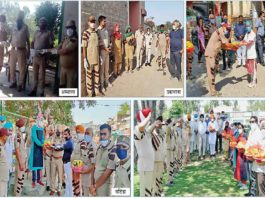 भिड़ताना में घायल व्यक्ति को दवाइयां वितरित करते हुए डेरा श्रद्धालु