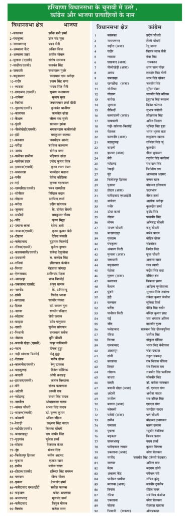 Haryana Election: एक क्लिक में देखें, भाजपा और कांग्रेस के सभी 90 उम्मीदवारों के नाम, किसे कहां से टिकट