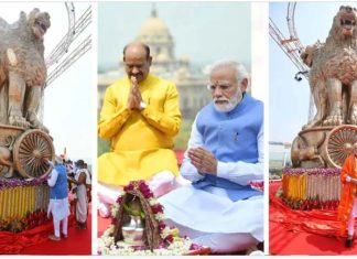 मोदी ने नए संसद भवन की छत पर अशोक स्तंभ का किया अनावरण