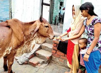 गजब: पूज्य गुरु जी की शिक्षाओं पर चलते हुए डेरा श्रद्धालु गाय को रोटी खिलाते हुए