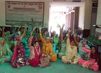 तहसील मुख्यालय पर रसोई माताओं का धरना-प्रदर्शन