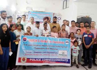 पंजाब पुलिस ने 35 जरुरतमंद थैलेसीमिया मरीजों को बांटी नि:शुल्क दवाइयां