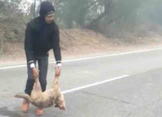डेरा प्रेमी ने गाड़ी रोककर मृतक भेड़िए को सड़क से हटाया