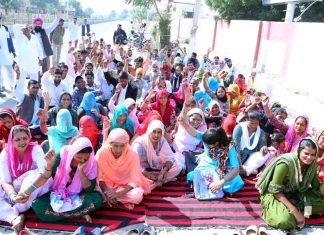 राज्य कर्मी दर्जे के लिए जिला परिषद कार्यालय पर धरना