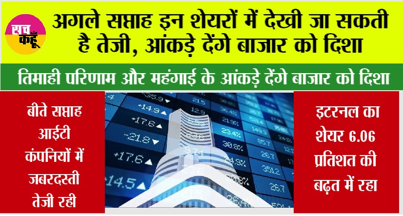 मुंबई (एजेंसी)। Share Market News: बीते सप्ताह घरेलू शेयर बाजारों में लगातार दूसरी साप्ताहिक तेजी के बाद आने वाले सप्ताह में निवेशकों की नजर महंगाई के आंकड़ों के साथ कंपनियों के तिमाही परिणामों पर भी होगी। आने वाले सप्ताह में खुदरा महंगाई और थोक महंगाई के सितंबर के आंकड़े जारी होने हैं। इसके अलावा कई दिग्गज कंपनियों की तिमाही परिणाम भी बाजार को प्रभावित कर सकते हैं। Share Market News