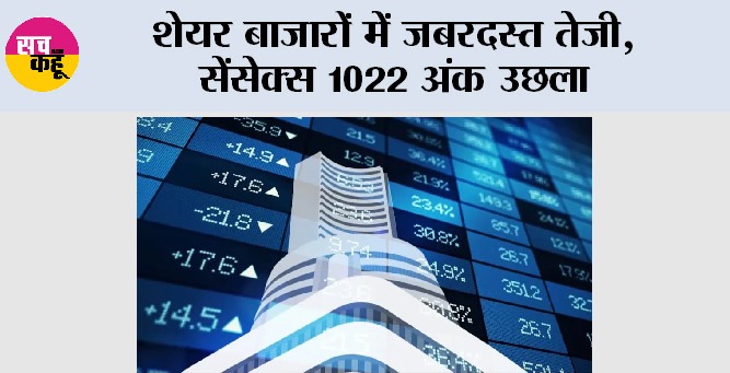 मुंबई (एजेंसी)। Stock Market: विदेशों से मिले सकारात्मक संकेतों के बीच घरेलू शेयर बाजारों में बुधवार को जबरदस्त तेजी देखी गयी और बीएसई का 30 शेयरों वाला संवेदी सूचकांक सेंसेक्स 1022.50 अंक (1.21) प्रतिशत उछलकर 85,609.51 अंक पर बंद हुआ। नेशनल स्टॉक एक्सचेंज (एनएसई) का निफ्टी-50 सूचकांक भी 320.50 अंक यानी 1.24 प्रतिशत चढ़कर 26,205.30 अंक पर पहुंच गया। लगातार तीन कारोबारी दिवस की गिरावट के बाद बाजार में रौनक लौटी है। विदेशों से मिले सकारात्मक संकेतों के बीच दोनों प्रमुख सूचकांक आज गिरावट में खुले, लेकिन खुलते ही हरे निशान में चले गये। Stock Market