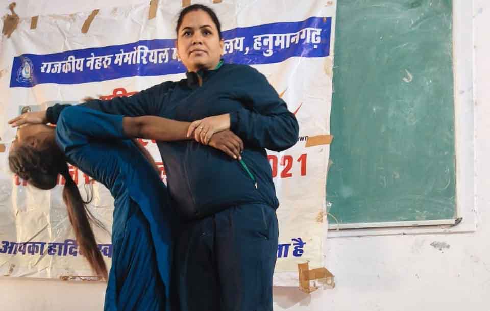 आपातकालीन स्थिति में महिलाएं इस एप के माध्यम से तुरंत पुलिस सहायता प्राप्त कर सकती हैं। प्रशिक्षकों ने कहा कि छात्राओं को छेड़छाड़ जैसी घटनाओं से घबराना नहीं चाहिए बल्कि साहस व सुझबूझ से उनका सामना करना चाहिए। मंच संचालन सहायक आचार्य किरण ढील ने किया। इस मौके पर राजस्थान राज्य महिला नीति तथा महिला प्रकोष्ठ प्रभारी भागवन्ती, मनदीप कौर, कृति गोयल, ममता सहित अन्य सहायक आचार्य मौजूद रहे। Hanumangarh News