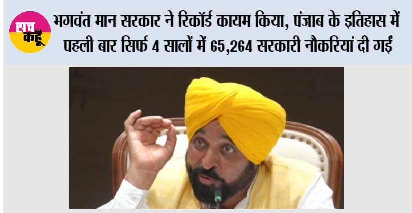 भगवंत मान सरकार ने रिकॉर्ड कायम किया, पंजाब के इतिहास में पहली बार सिर्फ 4 सालों में 65,264 सरकारी नौकरियां दी गईं