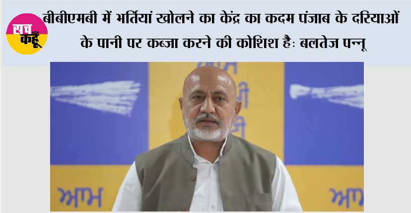 बीबीएमबी में भर्तियां खोलने का केंद्र का कदम पंजाब के दरियाओं के पानी पर कब्ज़ा करने की कोशिश है: बलतेज पन्नू