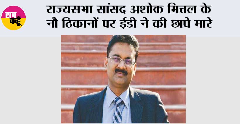 जालंधर। पंजाब से आम आदमी पार्टी (आप) के राज्यसभा सांसद अशोक मित्तल के करीब नौ ठिकानों पर प्रवर्तन निदेशालय (ईडी) ने छापे मारे हैं। ईडी के टीमों जालंधर में बुधवार सुबह नौ बजे राज्यसभा सांसद मित्तल के घर, यूनिवर्सिटी समेत अन्य ठिकानों पर पहुंचीं। जांच चल रही है। उनके घर के बाहर पुलिस बल तैनात की गई है। मित्तल इस वक्त अपने जालंधर स्थित घर में मौजूद हैं।