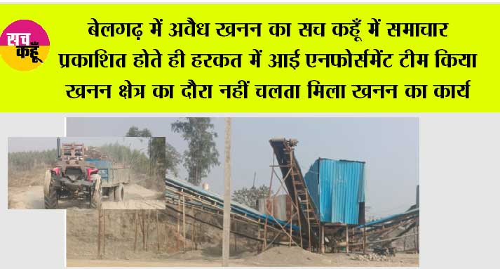 आपको बता दें बेलगढ़ में अवैध तरीके से बड़े पैमाने पर अवैध खनन होता है। यह अवैध खनन यमुना नदी और यमुना की पटरी के साथ-साथ निरंतर हो रहा है। यहां से खनन कर सामग्री पास ही लगे स्क्रीन प्लाटों पर सप्लाई की जाती है। बेलगढ़ में खनन के खेल को सूचना तंत्र के सहारे ही अंजाम दिया जाता है। क्योंकि बेलगढ़ में किसी भी तरह की मंजूर सुदा साइट या घाट नहीं है। बावजूद इसके बेलगढ़ में आज तक अवैध खनन का कार्य नहीं रुका है। खनन क्षेत्र में किसी भी अंजान गाड़ी, अनजान व्यक्ति, अधिकारी या कोई भी मीडिया पर्सन दाखिल होता है तो इसकी सूचना सोशल मीडिया के माध्यम से तुरंत खनन तस्करों तक पहुंच जाती है और मिनटो में ही बड़े स्तर का हो रहा अवैध खनन का कार्य बंद हो जाता है।