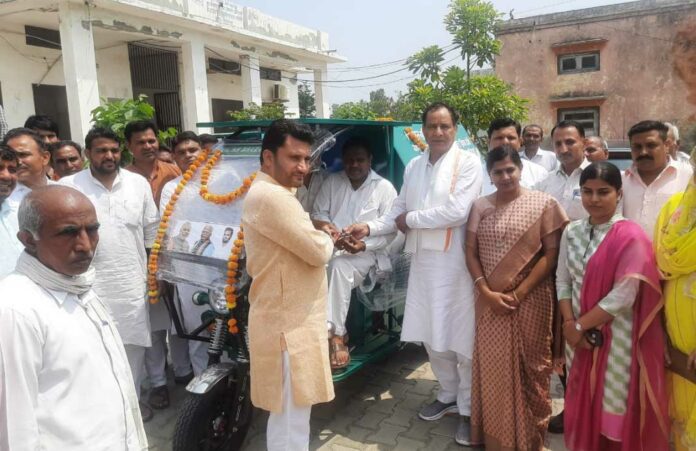 आगे भी ब्लॉक के अनेक गांव को ई-रिक्शा देने का काम किया जाएगा।इस अवसर विधायक मोहनलाल बडोली का फूल माला पहनाकर स्वागत किया गया इस मौके पर भारतीय जनता पार्टी के जिला अध्यक्ष तीर्थ राणा, पूर्व ब्लॉक समिति चेयरमैन राजवीर दहिया, खंड खंड विकास एवं पंचायत अधिकारी दीपिका शर्मा ,मीना नरवाल, झरोठी के सरपंच जोगिंदर सोहटी के सरपंच जितेंद्र राणा, ब्लॉक समिति के सभी सदस्य, ग्राम सचिव तेज सिंह, विजयपाल पांचाल मोहित राठी आदि उपस्थित रहे।