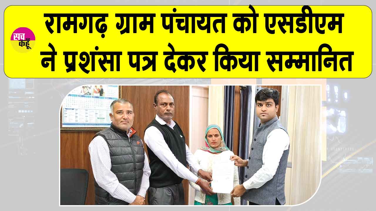 Ramgarh Gram Panchayat honored: डबवाली (सच कहूँ/सुभाष)। उपमंडल डबवाली के गांव रामगढ़ की ग्राम पंचायत ने गत दिवस सफल ग्राम सभा का आयोजन किया। ग्राम सभा में गांव की शामलात भूमि पर पात्रों को सरकार की योजना अनुरूप मालिकाना हक देने की प्रक्रिया में सराहनीय भूमिका रही। सफल ग्राम सभा के आयोजन को लेकर एसडीएम अर्पित संगल ने प्रशंसा पत्र देकर सम्मानित किया गया। उन्होंने कहा कि ग्राम सभा गांव के विकास व सामाजिक सुदृढ़ता में अहम भूमिका निभाती हैं। ग्राम सभा का सफल आयोजन गांव को सही दिशा प्रधान करती है। Sirsa News