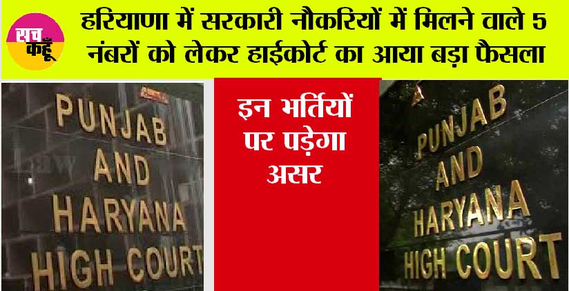 High Court of Punjab and Haryana: चंडीगढ़ (सच कहूँ न्यूज)। हरियाणा से बड़ी खबर सामने निकल कर आ रही है। मीडिया रिपोर्ट के अनुसार, पंजाब एवं हरियाणा हाईकोर्ट ने सरकारी नौकरियों में सामाजिक-आर्थिक आधार पर दिए जाने वाले आरक्षण को असंवैधानिक करार कर दिया है। हाईकोर्ट के इस फैसले से हरियाणा में रुकी हुई नियुक्तियों का रास्ता साफ हो गया है। हरियाणा सरकार ने नौकरियों में सामाजिक व आर्थिक आधार पर पिछले आवेदकों को 5 अंक देने का प्रावधान किया था। इस प्रावधान को चुनौती देने वाली याचिका के निपटारे के साथ ही हरियाणा में हजारों नियुक्तियों का रास्ता साफ हो गया है। Haryana News