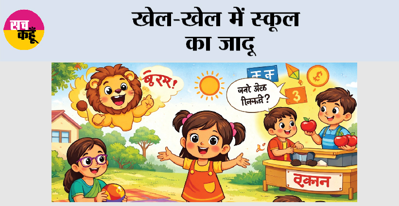 सबने सर्कल बनाया, गेंद घुमाई और अक्षर बोले। फिर पेड़-पौधों का खेल हुआ- ‘यह पेड़ कौन सा है? पत्ते गिनो!’ छोटू ने कहा, ‘नीम का पेड़, दस पत्ते!’ सब खुश हो गए। रानी बोली, ‘स्वीटी, तुम्हारा स्कूल कमाल का है। खेल-खेल में सब सीख जाते हैं।’ लेकिन एक समस्या आ गई। गांव के कुछ बड़े लोग कहने लगे, ‘स्कूल में खेल? यह कैसी पढ़ाई है? किताबें खोलो!’ स्वीटी उदास हो गई। उसने टीचर को बताया। आंटी मुस्कुराईं- ‘चिंता मत करो, हम सबको समझा देंगे।’ अगले दिन पेरेंट्स मीटिंग हुई। बच्चों ने आगे आकर अपने-अपने खेल दिखाए। स्वीटी ने गेंद वाला अक्षर खेल दिखाया। छोटू ने बाजार का खेल समझाया। सब माता-पिता दंग रह गए—‘वाह! बच्चे खुश भी हैं और सीख भी रहे हैं!’ टीचर आंटी ने समझाया, ‘बच्चों का दिमाग खेल में ज्यादा लगता है। खेल से चीजें जल्दी याद रहती हैं। आजकल दुनिया भर में ‘प्ले-वे मेथड’ अपनाया जा रहा है। भारत में भी एनसीईआरटी इसे बढ़ावा देता है। इससे बच्चे एक्टिव और क्रिएटिव बनते हैं।’ सब सहमत हो गए। स्वीटी ने ताली बजाई—‘हिप-हिप हुर्रे!’ अब स्वीटी गली के सभी बच्चों को स्कूल बुलाती है- ‘आओ, खेलो और सीखो!’ सब कहते, ‘हां स्वीटी दीदी, खेल-खेल में पढ़ाई सबसे मजेदार है!’ स्वीटी समझ गई—स्कूल सिर्फ किताबों तक सीमित नहीं, बल्कि जिंदगी का एक खूबसूरत खेल है।
