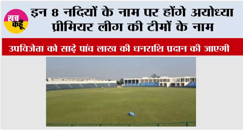 चौहान ने अयोध्या प्रीमियर लीग पर प्रकाश डालते हुए बताया कि अयोध्या में नवनिर्मित बी आर आंबेडकर स्टेडियम में होने वाली इस लीग में सभी मैच 20 ओवर के होंगे। लीग की सभी आठ टीमों के नाम उत्तर प्रदेश की आठ भिन्न भिन्न नदियों के नाम पर लखनऊ की टीम का नाम गोमती थंडर, गंगा वॉरियर्स, हिडेन टाइटंस, मनोरमा मार्बल्स, सरयू स्मेशर्स, यमुना सुपर किंग्स, चंबल चार्जर्स, बेतवा ब्लास्टर्स हैं। अयोध्या प्रीमियर लीग के निदेशक बलदेव श्रीवास्तव ने बताया कि यह लीग डी डी स्पोर्ट्स, प्रसार भारती पर लाइव दिखाई जाएगी, सभी मैच दिन के होंगे। लगभग 250 खिलाड़ी इस लोग में प्रतिभाग कर रहे हैं। विजेता को ग्यारह लाख रुपए की धनराशि एवं ट्रॉफी मिलेगी जबकि उपविजेता को साढ़े पांच लाख की धनराशि प्रदान की जाएगी।