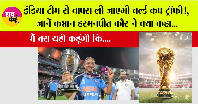 Women’s World Cup trophy: नई दिल्ली (सच कहूँ न्यूज)। भारतीय महिला टीम की कप्तान हरमनप्रीत कौर ने कहा कि टीम को अपने ऊपर भरोसा था कि वे यह विश्वकप जीत सकते है। दक्षिण अफ्रीका को रविवार रात फाइनल मुकाबले में हराकर महिला विश्व कप जीतने वाली भारतीय टीम की कप्तान हरमनप्रीत मुस्कुराते हुए ट्रॉफी के साथ संवाददाता सम्मेलन में पहुंची। उन्होंने कहा, ‘इस समय तो मैं कुछ कहने की स्थिति में नहीं हूं। मैं केवल अपनी भावनाओं को व्यक्त करने का प्रयास कर रही हूं। मैं बस यही कहूंगी कि टीम ने कई उतार-चढ़ाव देखे लेकिन टीम को स्वयं पर भरोसा था। मैं यह पहले दिन से कह रही हूं। हम इधर-उधर नहीं देख रहे थे हमारा सारा ध्यान केवल लक्ष्य पर था।