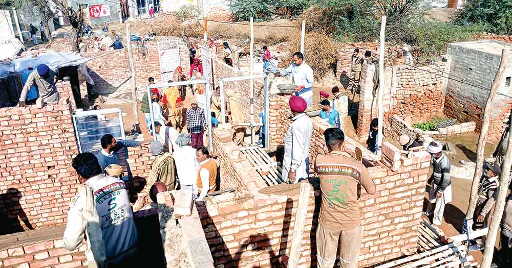 पूज्य गुरु जी के आशियाना मुहिम के तहत ब्लॉक की साध-संगत ने गांव बडागुढ़ा में एक विधवा महिला को मात्र एक दिन में ही पक्का मकान बनाकर दिया।