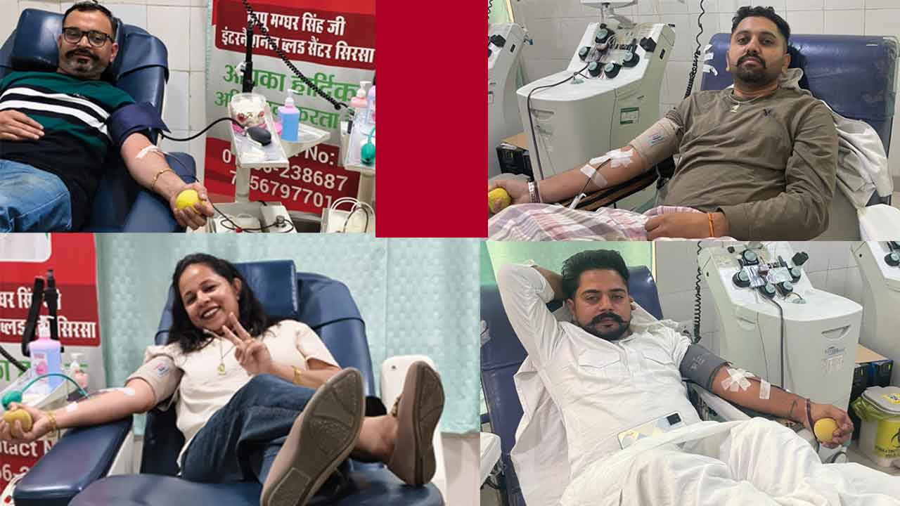 Blood Donation: डबवाली (सच कहूँ/गुरसाहिब इन्सां)। पवित्र एमएसजी अवतार महीने की खुशी में डबवाली ब्लॉक के सेवादार पूज्य गुरु संत डा. गुरमीत राम रहीम सिंह जी इन्सां की पवित्र शिक्षाओं पर चलते हुए खूनदान कर अवतार महीने की खुशियां मना रहे है। इसी कड़ी में बीते दिवस ईशान इन्सां, ईशा इन्सां ने शाह सतनाम जी स्पेशलिटी अस्पताल स्थित पूज्य बापू मग्घर सिंह जी इंटरनेशनल ब्लड सेंटर में पहुंचकर रक्तदान किया। वहीं मनप्रीत इन्सां, दविंद्र इन्सां ने ब्लड सेंटर में ही जरूरतमंद मरीज के लिए सिंगल डोनर प्लेटलेट्स दान किए। सभी रक्तदाताओं को ब्लड सेंटर की ओर से रक्तदान करने पर मेडल पहनाकर व प्रशंसा पत्र देकर सम्मानित किया गया। Dabwali News