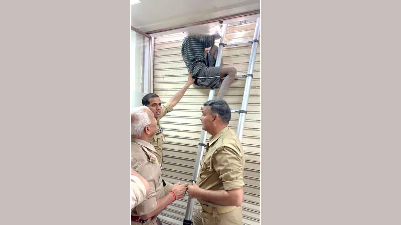 क्लीनिक में चोरी करने गया चोर शटर में फंसा, फायर सर्विस ने किया रेस्क्यू