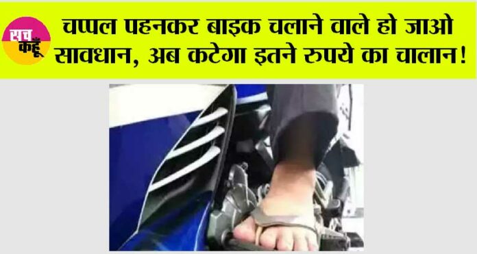Traffic Challan: पिछले काफी दिनों से ऐसे कई मामले सामने आ रहे हैं, जिनमें चप्पल पहनकर बाइक या स्कूटर चलाने पर वाहनों का चालान काटा गया हैं, ऐसे में सवाल ये उठता हैं कि आखिर चप्पल पहनकर बाइक या स्कूटर चलाने पर किस तरह का चालान काटा जाता हैं, मोटर व्हीकल एक्ट के तहत चप्पल पहनकर बाइक चलाने पर ट्रैफिक पुलिस आपका चालान काट सकती हैं, या फिर नहीं? तो आपको ज्यादा दिमाग पर जोर देने की जरूरत नहीं हैं, क्योंकि हम अपने इस लेख में विस्तार से आपको इस मुद्दे के बारे में बताएंगे। दरअसल चप्पल पहनकर बाइक या स्कूटर चलाने की मनाही सुरक्षा कारणों से की जाती हैं, इसके कई मुख्य कारण ये भी हैं। जैसे:-