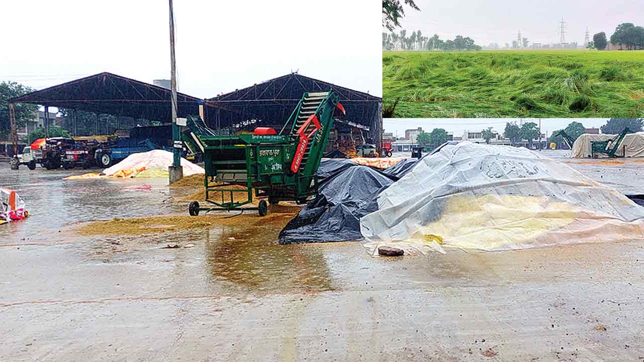 Sangrur News: अनाज मंडी में किसानों द्वारा तिरपाल से ढकी धान की फसल और बारिश व आंधी से गिरी फसल। छाया: कर्म थिंद।